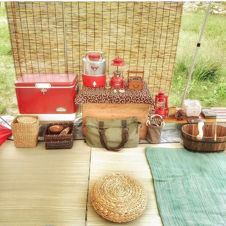 普通のキャンプに飽きたら、畳を敷いて和風キャンプはいかがですか?すだれは光を遮るだけでなく、風通しも良いのでこれからの季節に最適!和風な小物をキャンプギアと合わせていくのも楽しそうですね。