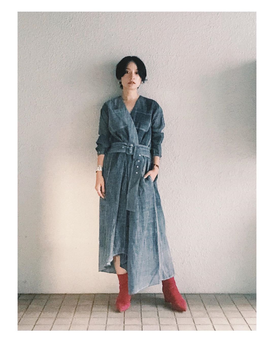 季節的にも、ウールってセーターのイメージがやっぱり強いけど、モード感のあるドレスに使われたりもするんだなーと、ジンワリと感動。