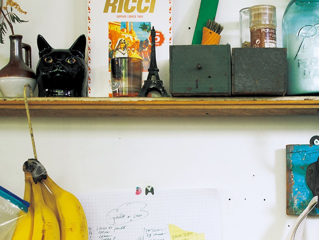 今号の綴じ込み企画は「つくりのいいもの、のある暮らし」。3組の家を訪ね、つくりのいいものとの出合いについて聞きました。PRマネージャー・西野絵梨さん(@erinishino)とフードディレクター・浅本 充さん(@makoto_asamoto)夫妻が暮らすのは、住宅街にある一軒家。棚には、北欧のヴィンテージ食器がずらり。キッチンの作業台にはレシピやバナナなどが。(→p.135)