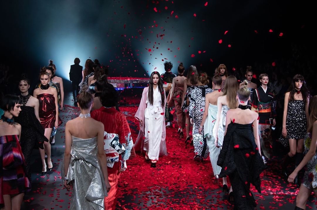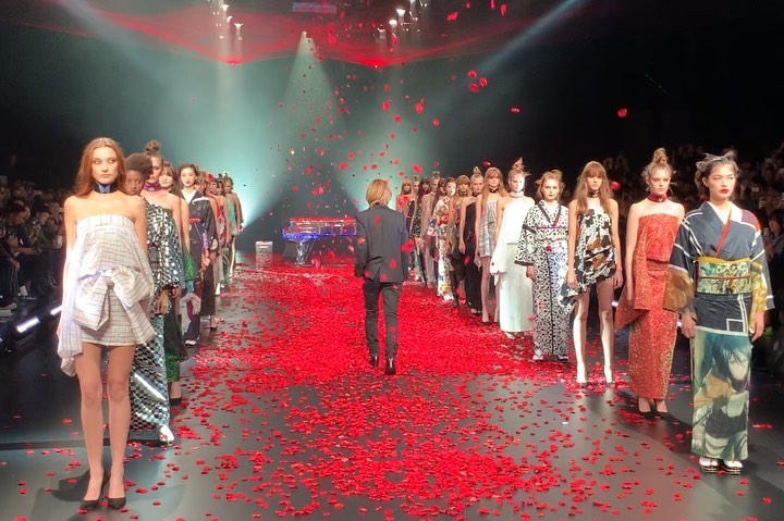 フィナーレは、花びらが舞い落ちる中、モデルがずらりと並んだ間をYOSHIKIが歩くという圧巻の演出!2020年春夏の東コレが、華々しく幕開けました!