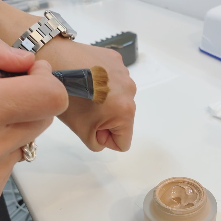 ちょっとカバー力欲しいなぁ、でもがっちり作りたくないなぁという時、薄膜は仕上げにしたい時には極少量をブラシで伸ばして終了。