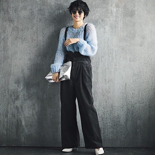もこもこのモヘアニットに合わせて。