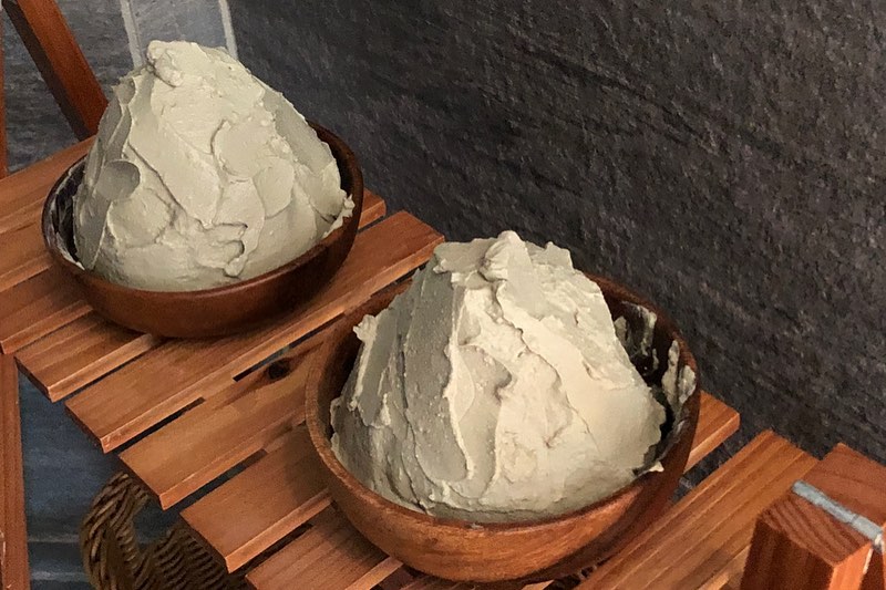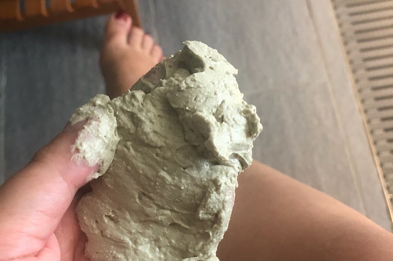 この山盛りになっているクレイを頭の先から足先までくまなく塗りこみ、ハマムでマッサージしながらクレイを浸透させていきます。しかも、このクレイは肌に潤いを補給しながら、美肌や美白に働きかけるのと同時に、毛穴の奥から老廃物を吸着&排出も叶えてくれるんだとか。