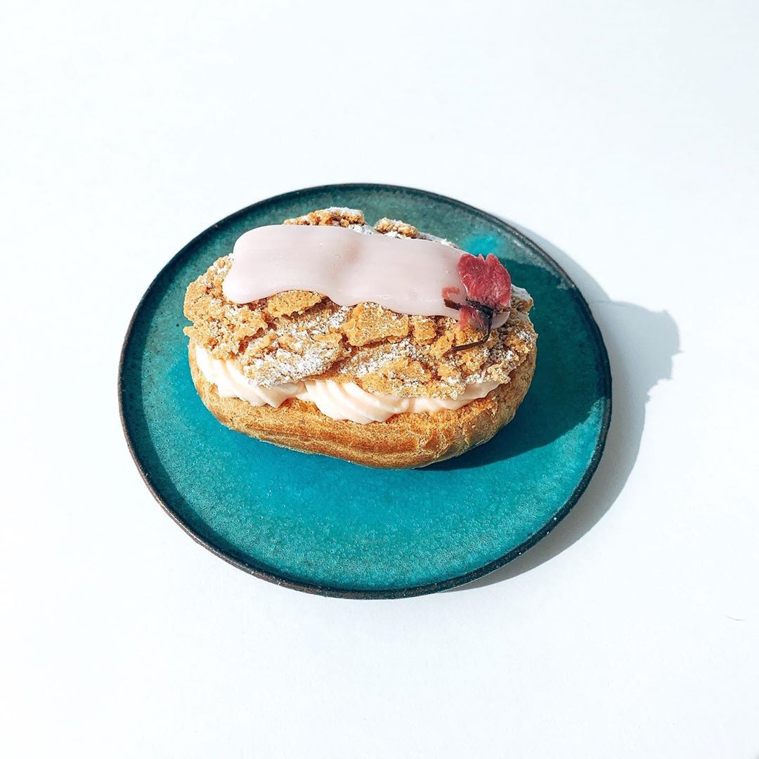 ただの桜のシュークリームだと思ったら大間違い! なんとシュー生地の中で、カスタードクリーム、ストロベリーソース、いちごのムース、さくらの生クリームが層になっているのです。色々な食感と風味が混ざり合い、まるでパフェを食べているかのような満足感😋