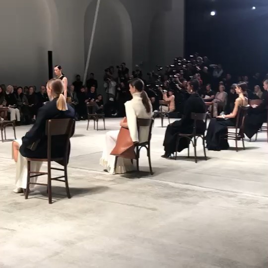 毎度演出にたけた「グッチ」のショー。今回は、モデルのヘアメイク会場をフォトコールに😳360度回転する劇場型の会場で、モデルが着替えるところまでを公開し、裏方のスタッフにもフィーチャーした演出で、クリエイションの裏側にも光を✨乙女心をくすぐるドーリーライクなルックが多く登場。