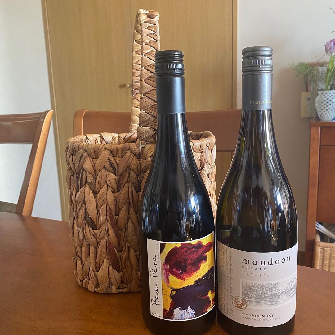 左は、輝咲さんが惚れ込んだ「ベラ リッジ エステイト」でわけていただいたカベルネソーヴィニヨン、右はワイナリーツアーで訪れた「マンドゥーン エステイト」のシャルドネです。後ろに見えるのはこワイン2本を持ち運べるかご、マンドゥーンのショップで見つけました💕