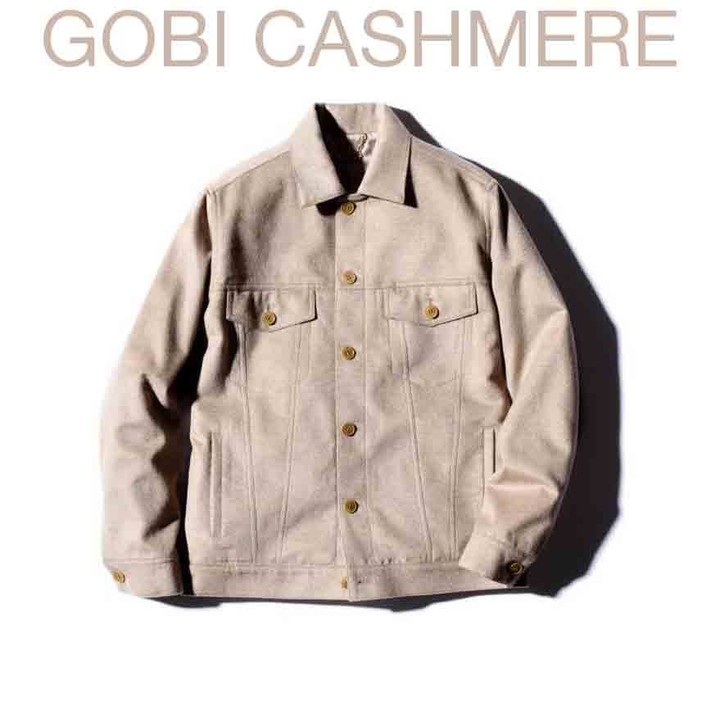 広大な土地と寒暖差の激しいモンゴルで採取される最高品質のカシミヤ原毛を使う、世界でも有数の #カシミヤ 専門ファクトリーのオリジナルブランド「#ゴビ」は、ありそうでなかったカシミヤを使ったトラッカー #ジャケット を。紡いだカシミヤの原毛を染色せずに活かしたナチュラルな色彩が上品な雰囲気で、いわゆるデニムのそれとは違い滑らかな肌触りと柔らかな着心地が楽しめる。カシミヤ製品とは思えないコストパフォーマンスの高さも魅力的だ。