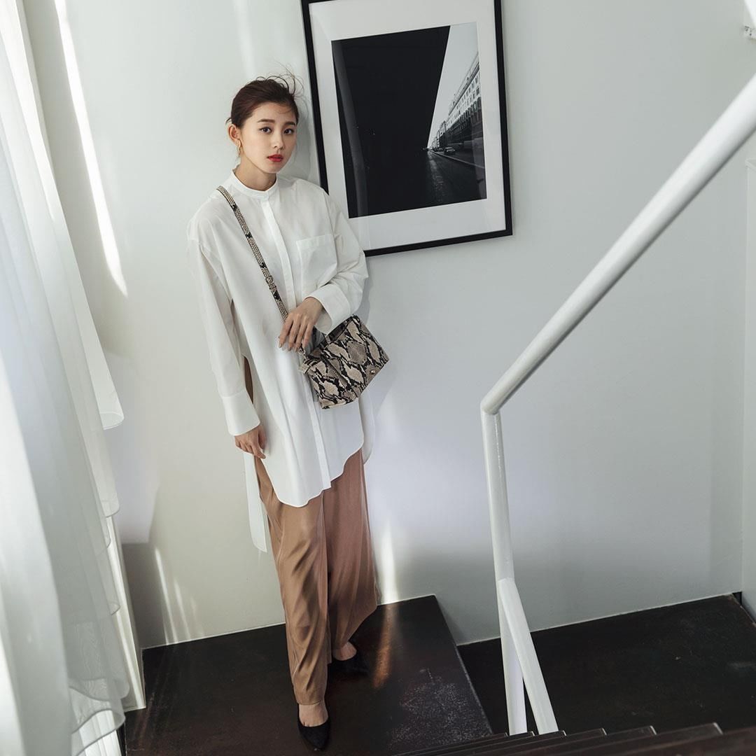 春も取り入れたい旬の重ためバランスこそ、しなやかなパンツで季節感のある装いに仕上げて。