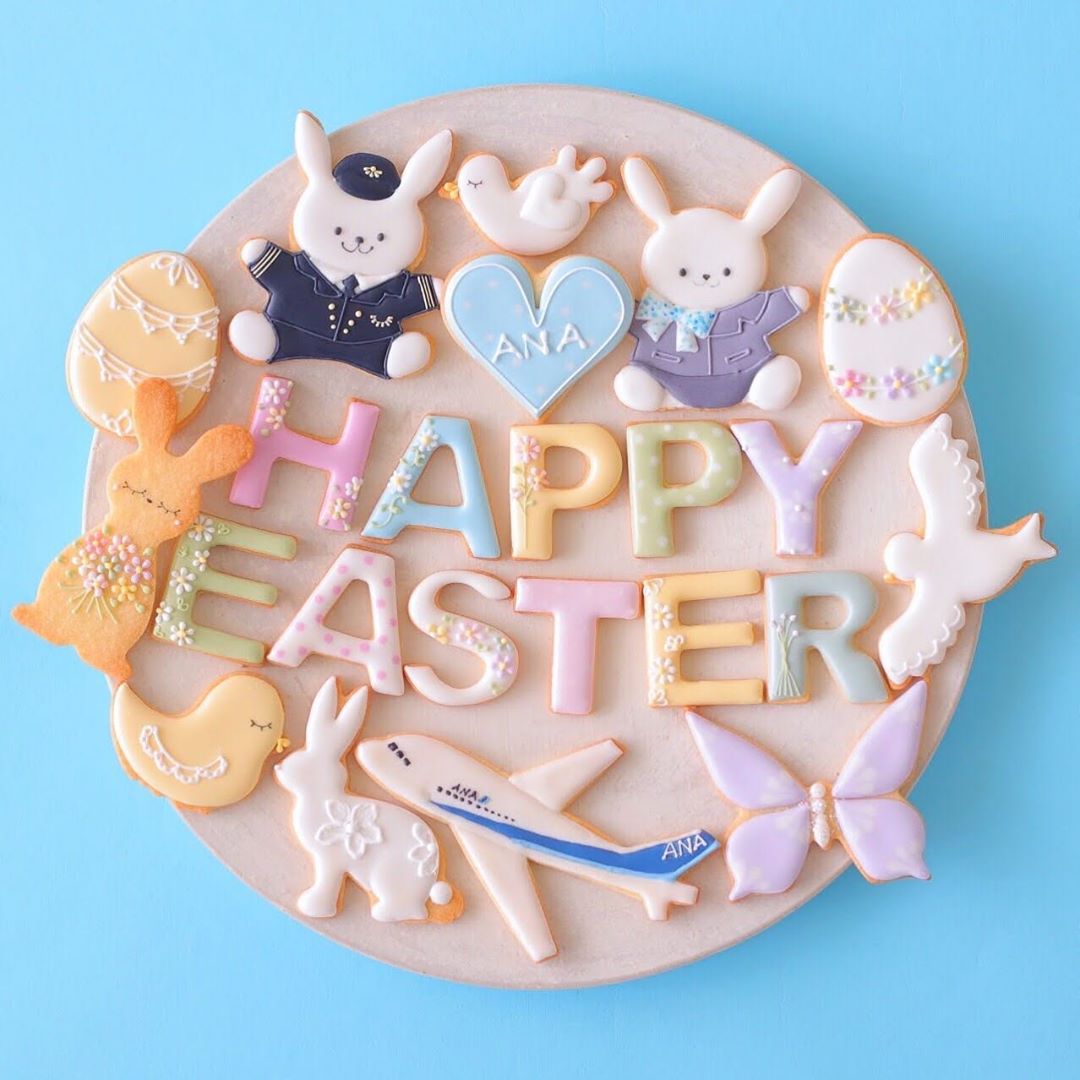 #今日はイースター #4月12日 #イースターエッグ #イースターバニー #ハッピーイースター #春の到来 #復活祭 #アイシングクッキー #うさぎ #たまご #パイロット #客室乗務員 #飛行機 #制服 #飾りつけ #パステルカラー #平和を願って #easter #easteregg #bunny #rabbit #happyeaster2020 #congratulation #icingcookies #spring #pastelcolour #colorful #peace #ana_jp
