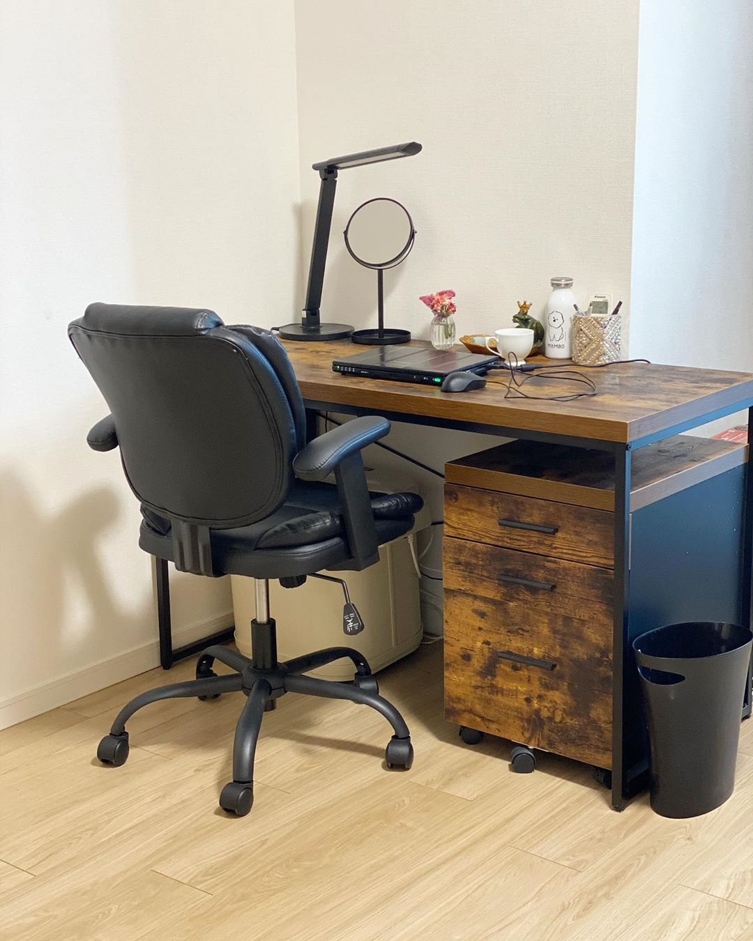 机、引き出し、椅子はニトリ。