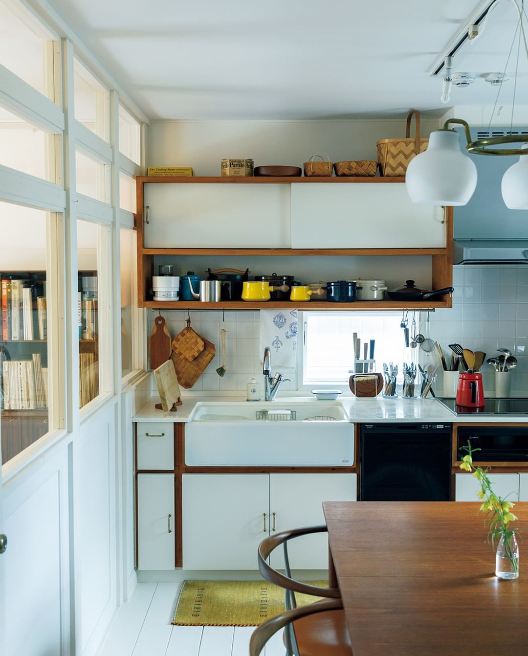 『チッカディー&ホーム』オーナー沼田寛彦さん(@chickadeeandhome_sendai)・美幸さん夫妻の、北欧スタイルのキッチン。フィン・ユールのテーブルをはじめとするヴィンテージ家具に合わせ、1940〜50年代の雰囲気を再現。(→p.30)