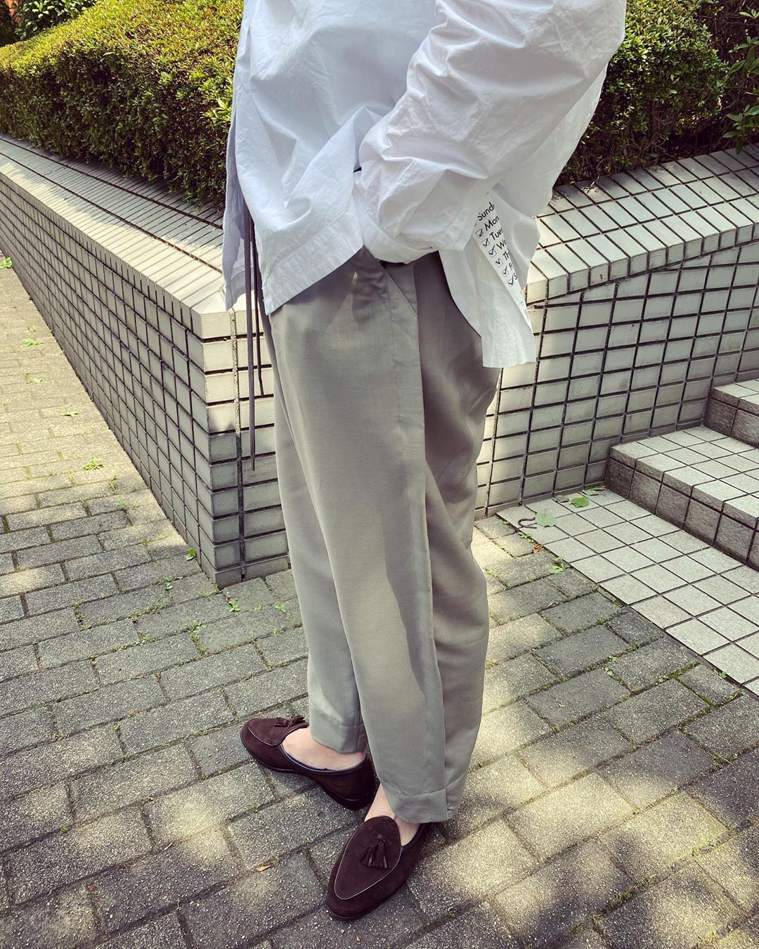 パンツはMARKA、シャツはGOOD NEIGHBORS SHIRTSのものらしいです。