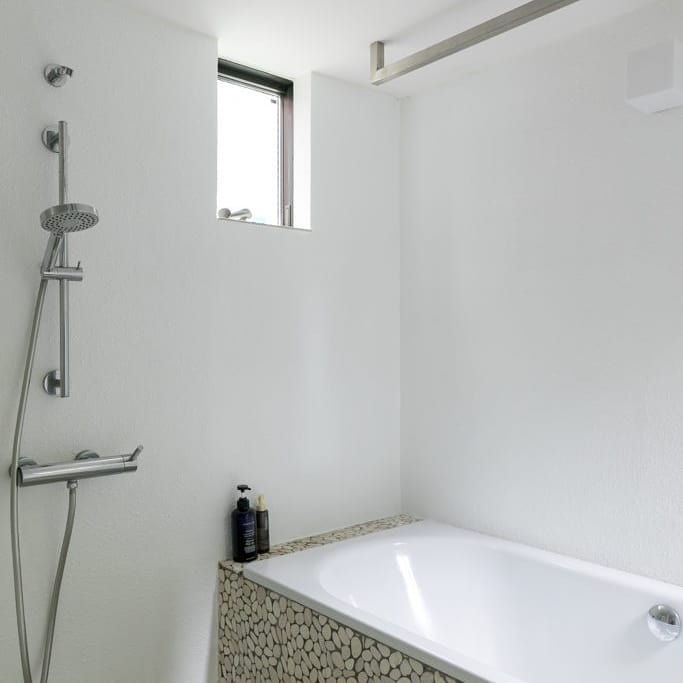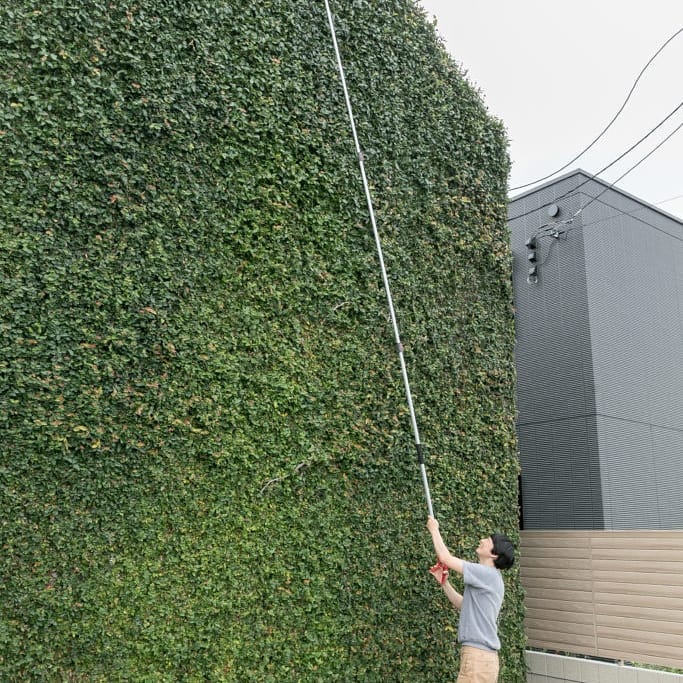 「シンプルなデザインを求めていたので、当初は外壁も単純に真っ白のイメージをしていました。ですが、白い壁だと雨だれで汚れてしまう、と猿田さんからアドバイスをいただいたので、それならば、と以前から憧れを持っていたツタのある家にしたいと思いました」(中川さん)。