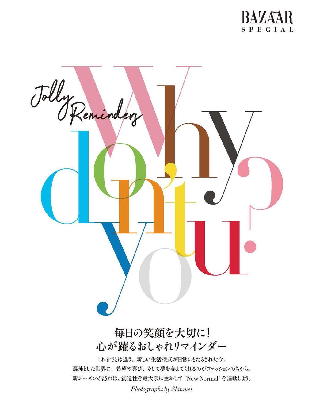 これまでとは違う、新しい生活様式が日常にもたらされた今。発売中のハーパーズ バザー9月号では、恒例のWhy don’t you?形式で “New Normal”をご提案。
