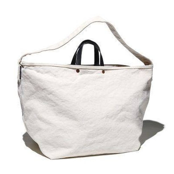 毎日使うバッグだからこそちょっとした使用感が気になるもの。コム デ ギャルソン・オムのトートバッグはタフな帆布でガシガシ使えて、ショルダーストラップの長さやフィット感も絶妙。手に馴染むレザーハンドルは見た目もよし! 縦38㎝×横34㎝×マチ30㎝。¥45,000/コム デ ギャルソン・オム(コム デ ギャルソン)