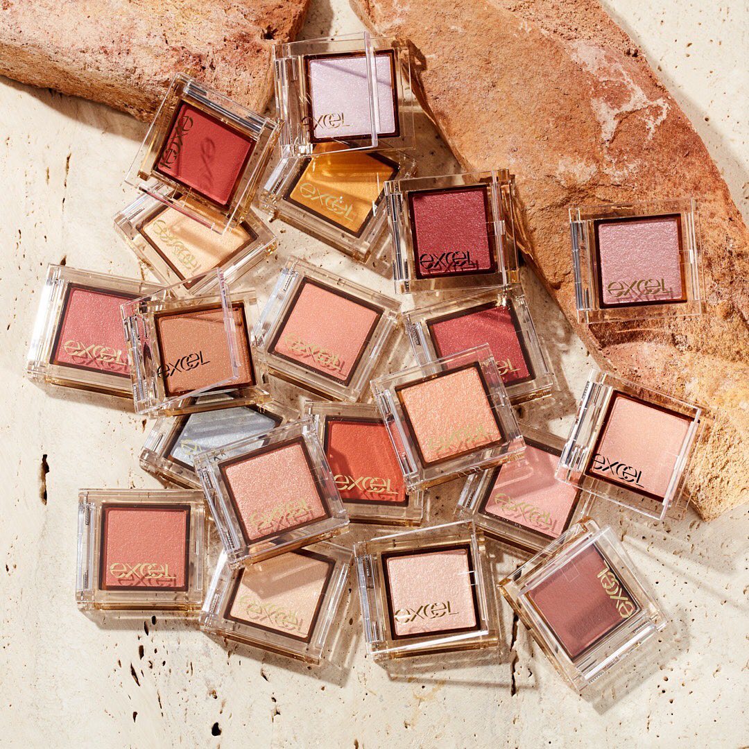 New single eyeshadow from【excel】with different texture, color and shimmer✨Choose from 4 textures depending on your style; shimmer “Pearl”, glossy “Rich”, semi-matte “Fluffy”, iridescent MIX “Dazzle”. Change up your makeup depending on your mood!