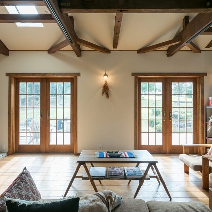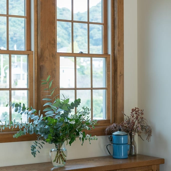 印象を決める木製窓やアンティークのドア