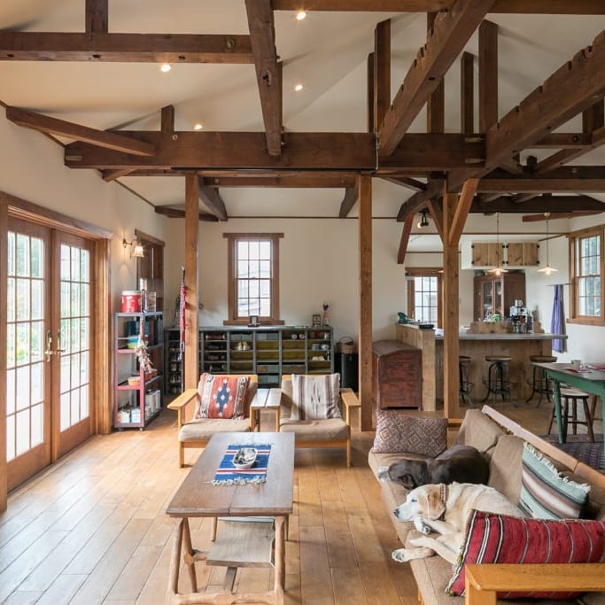 印象的な木製扉はアンダーセン社のもの。
