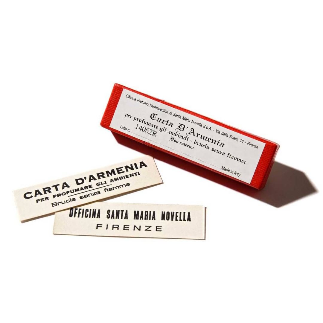 芳香樹脂やオリエンタルスパイスの浸剤を染み込ませることにより、ほんのりと優しく香る、サンタ・マリア・ノヴェッラのアルメニアペーパー。本来は、お香のように燃やして使うことで室内をリラックス空間に変えるアイテムであるが、ビジネスシーンにも実は使える優れもの。名刺ケースや財布などに忍び込ませてさりげなく香らせることで、香りのある人だと印象付けられる。世界最古の薬局が提案するアイテムなだけあって、老若男女に受け入れられること請け合いだ。