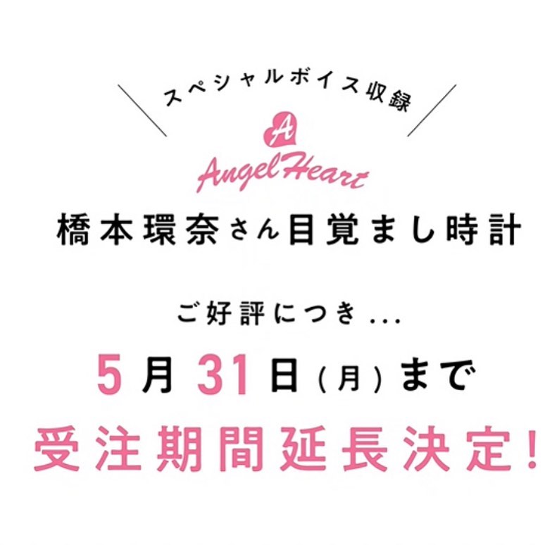 @Kanna Hashimoto 橋本環奈 @橋本環奈: こんにちは!環奈MGです。 エンジェルハートのコラボ目覚まし時計ですが、予想以上の反響だった為、5/31まで受注期間延長が決定したそうです! 受注販売限定商… 2021-05-17 こんにちは!環奈MGです。 エンジェルハートのコラボ目覚まし時計ですが、予想以上の反響だった為、5/31まで受注期間延長が決定したそうです! ️ 受注販売限定商品ですのでこの機会を逃さないように、是非チェックしてみてくださいね。 リンクはストーリーでシェアします⏰ #橋本環奈 #橋本環奈2021 #橋本環奈マネージャー #エンジェルハート #ウエニ貿易 #hashimoto_kanna#kanna_hashimoto#kannahashimoto.mg#橋本環奈Hashimoto KannaKanna Hashimotoウエニ貿易エンジェルハート橋本環奈2021橋本環奈マネージャー WACOCA: People, Life, Style.