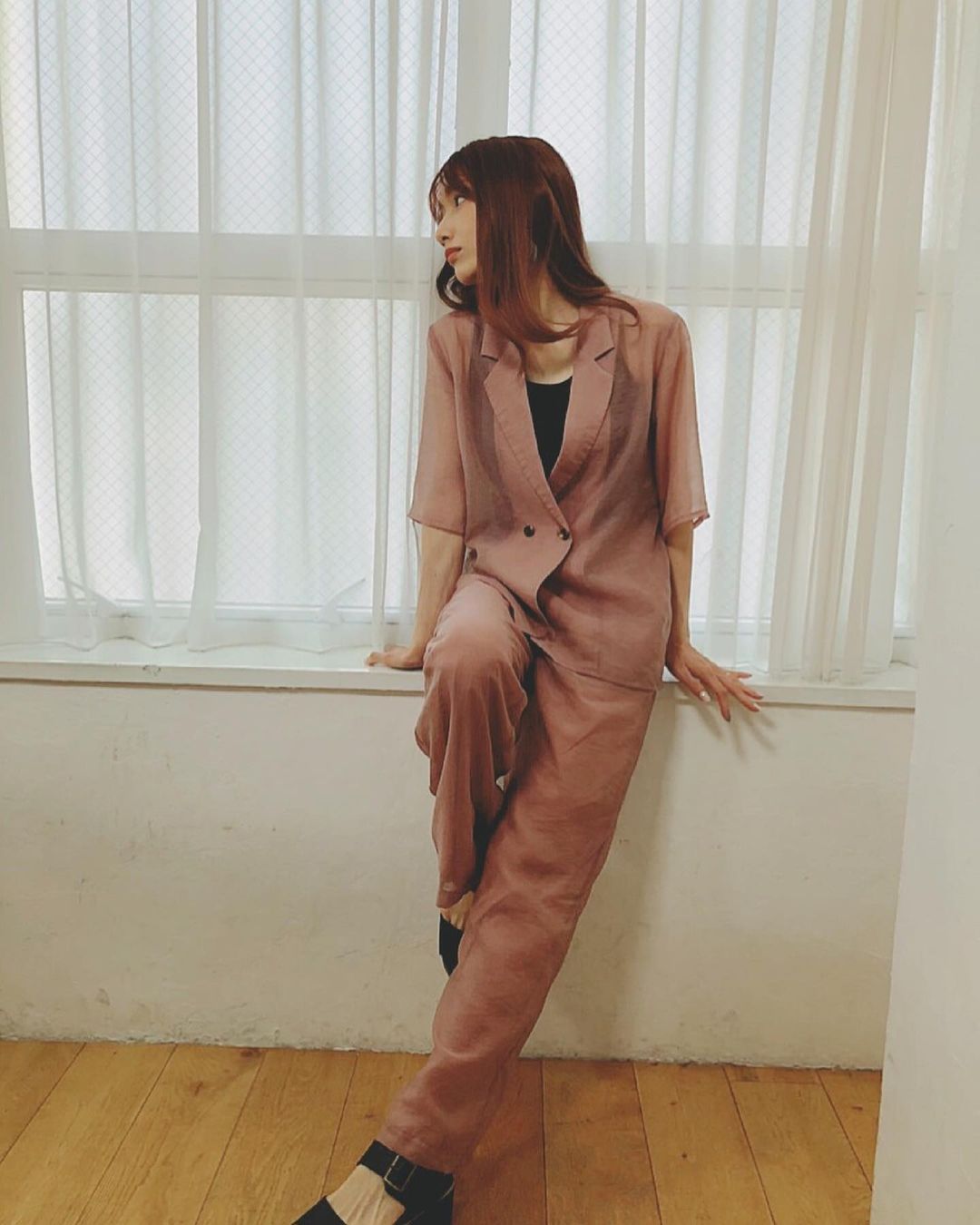 bottoms:ソフトオーガンジーストレートパンツ/モカピンク