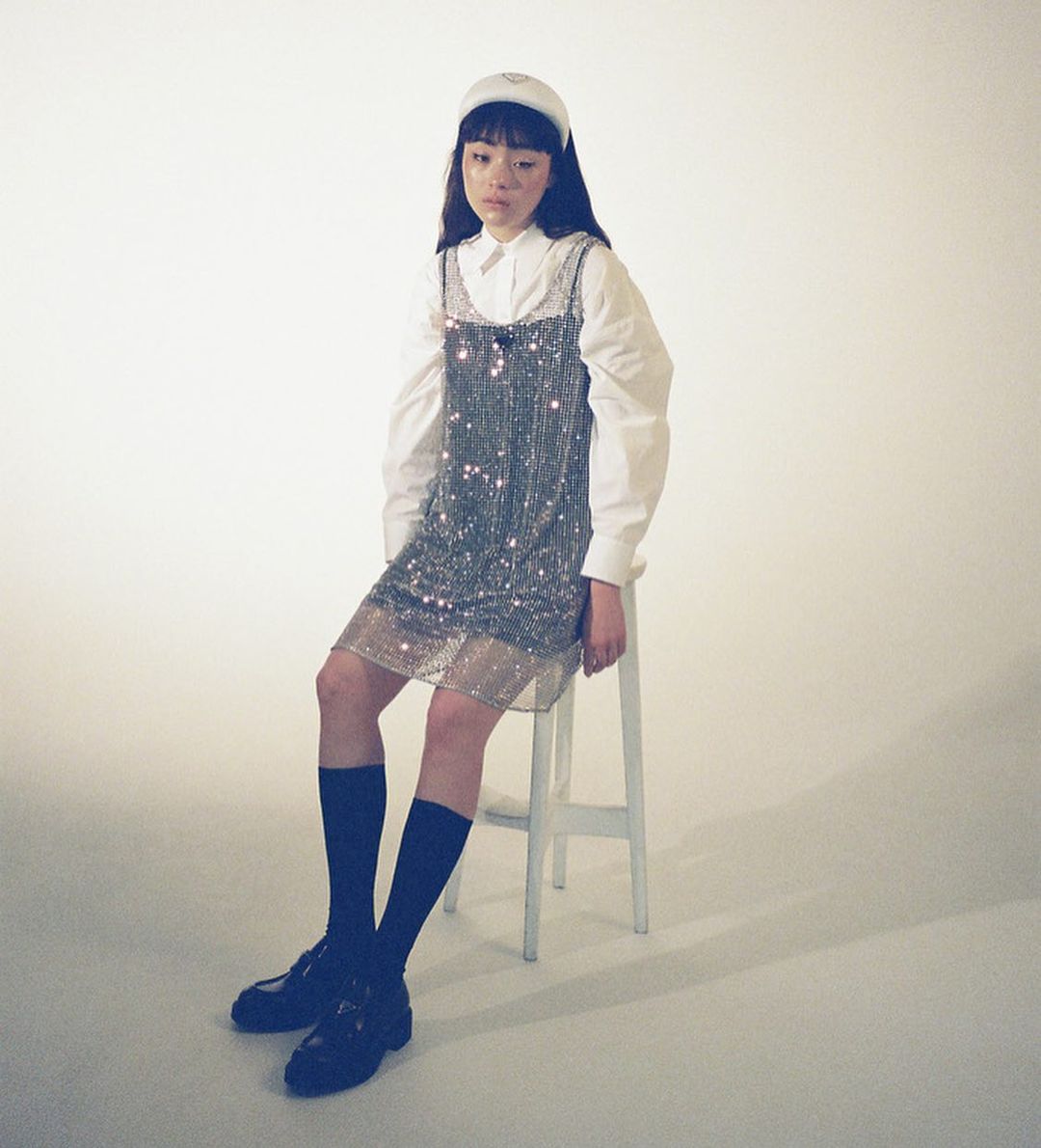 ドレス¥638,000、シャツロンパース 参考商品、カチューシャ¥49,500、ソックス¥17,600、ローファー¥124,300