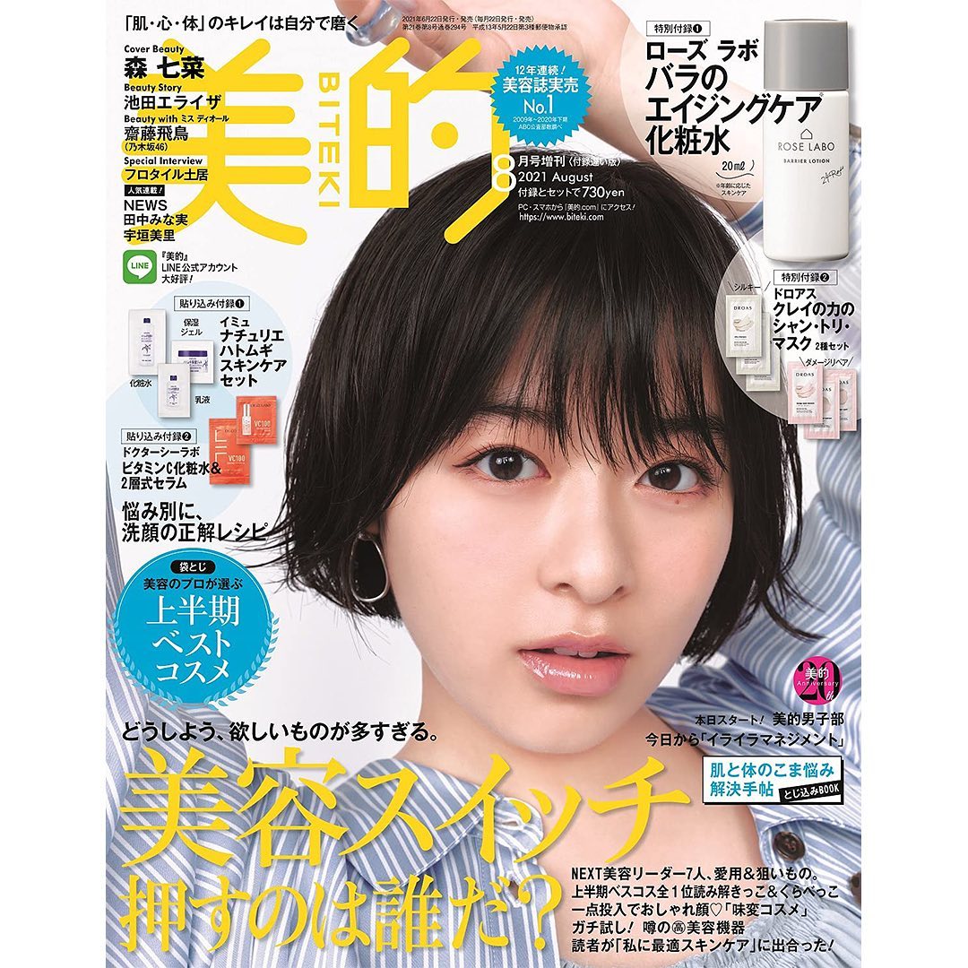 #美的#美的8月号#森七菜#雑誌#雑誌付録#特別付録#付録#ラロッシュポゼ#コスメサンプル#トーンアップUV#ドクターシーラボ#ハトムギ化粧水#ドロアス#ローズラボ#美容#beauty#bitekicom