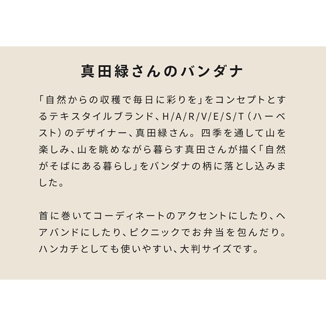 『ランドネ』が発行される奇数月には雑誌とオリジナル付録を、偶数月には素敵な作家さんとコラボしたスペシャルなアイテムをお届けします!10月は真田緑さんのバンダナをプレゼント🎁(写真はイメージです)