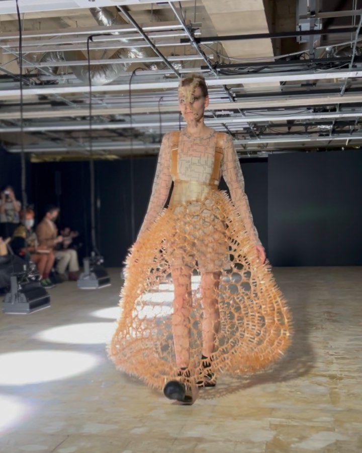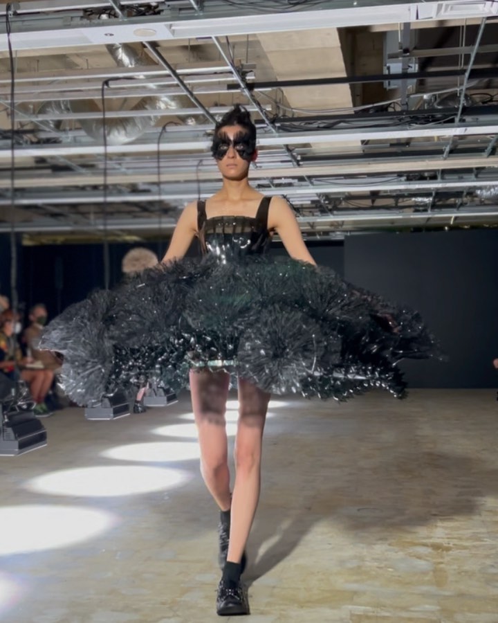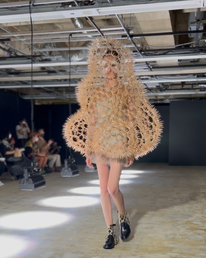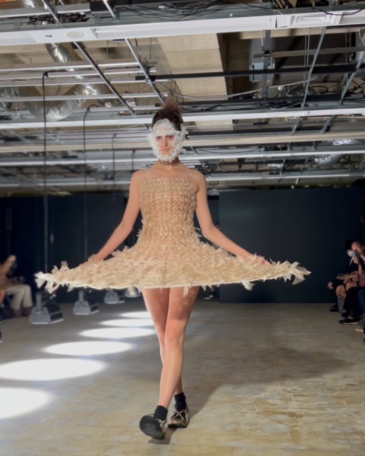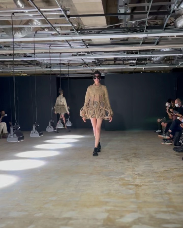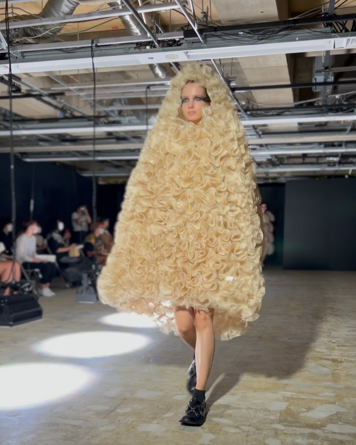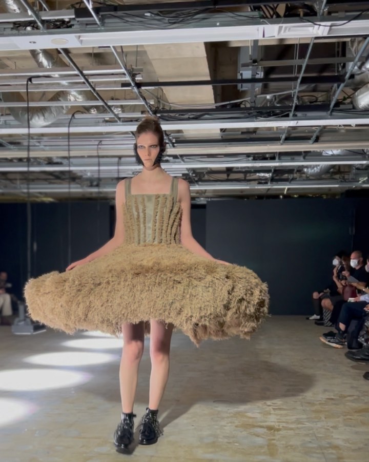 黒を陰影で表現したと語る二宮啓による、ノワール ケイ ニノミヤの2022年春夏は、ベージュ色の美しさが際立つコレクション。オリジナルのシューズハーネスにも注目して。#noirkeininomiya #ss22