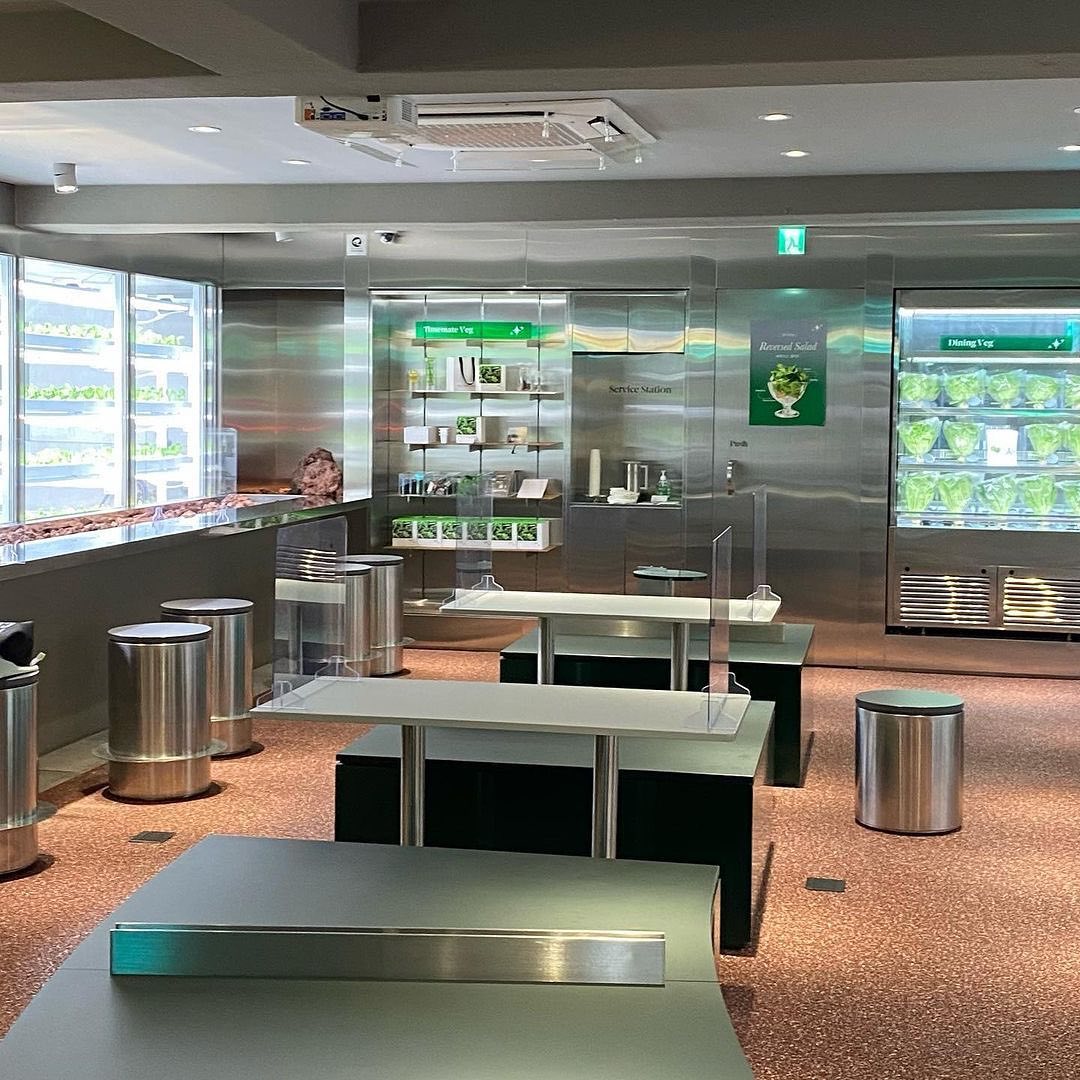 室内で栽培された野菜を使ったメニューがベルトコンベアで運ばれてくる斬新なカフェです。実際に目の前には栽培されている野菜を見ることができ、健康に良いメニューを楽しむことができます✨