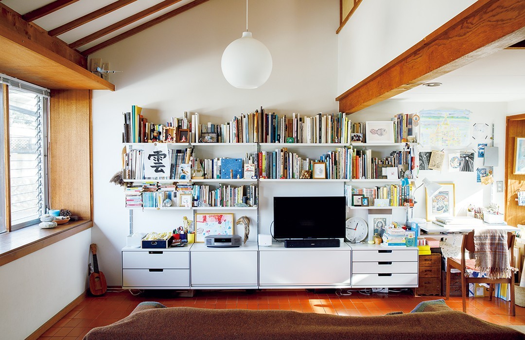 写真家の松村隆史さん(@takafumimatsumura)と絵本作家の松村真依子さん(@maykomatsumura)が暮らす、築38年の一軒家。空間にスパイスを与えているのは、ディーター・ラムスがデザインしたシェルフ。最新号「居心地のいい部屋に、整える」より。