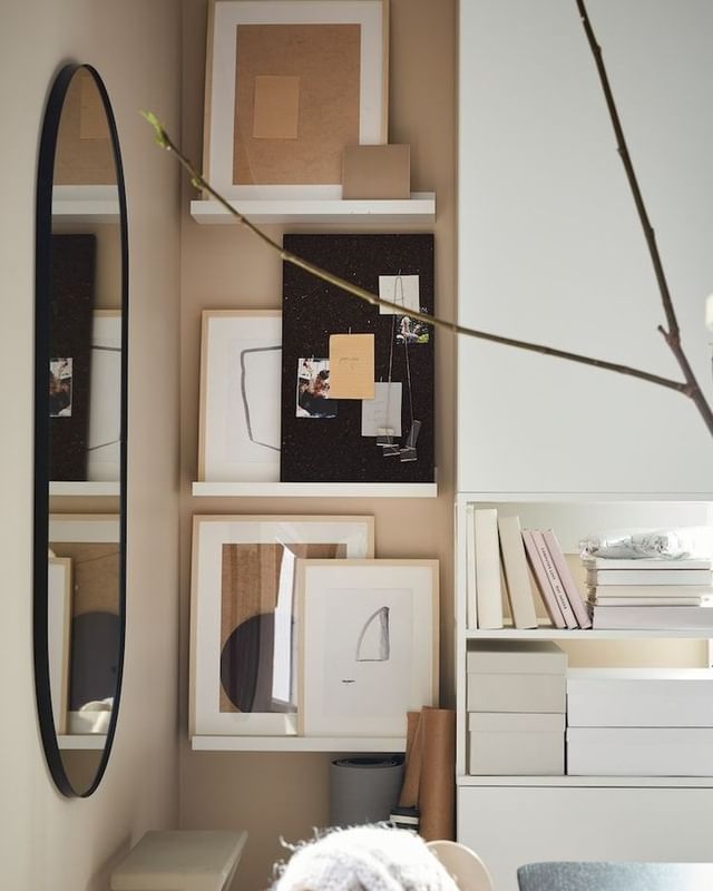 4枚目:壁に棚を追加して、本や雑誌、植物やフォトフレームなどを収納する