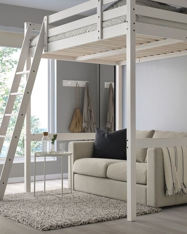 5枚目:頭上のスペースを利用したユニット家具で収納スペースを増やす