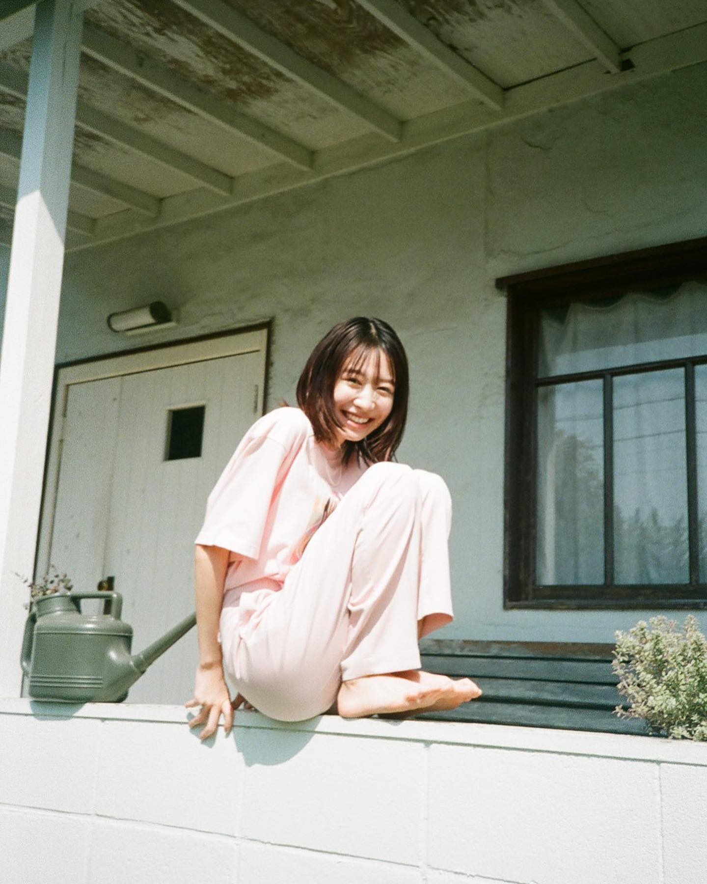 笑いながら撮影したので、
