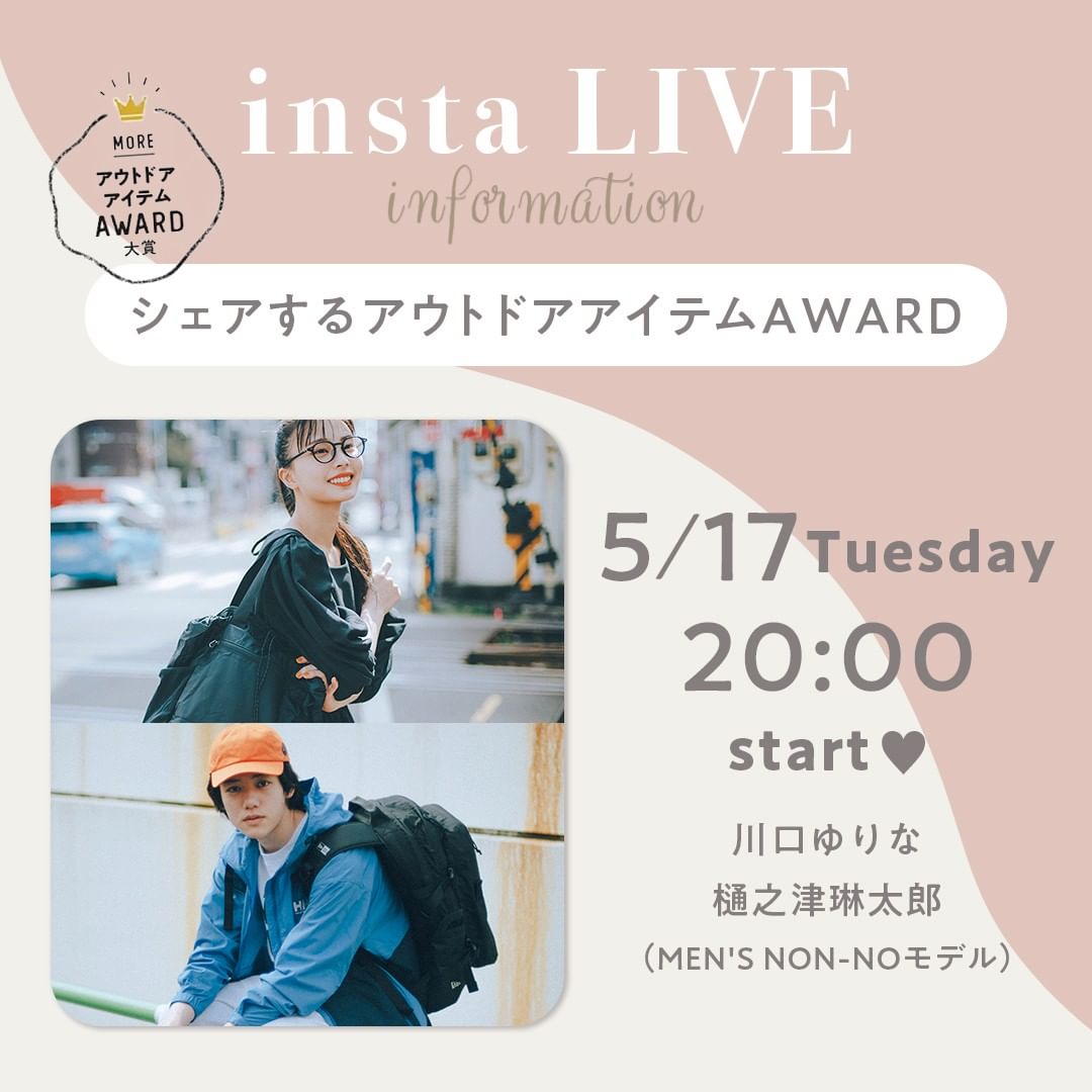 MORE6月号の特集『プロが選んだ! シェアするアウトドアアイテムAWARD』に登場してくれた川口ゆりなちゃんとメンズノンノモデル樋之津琳太郎くんのインスタライブを開催✨