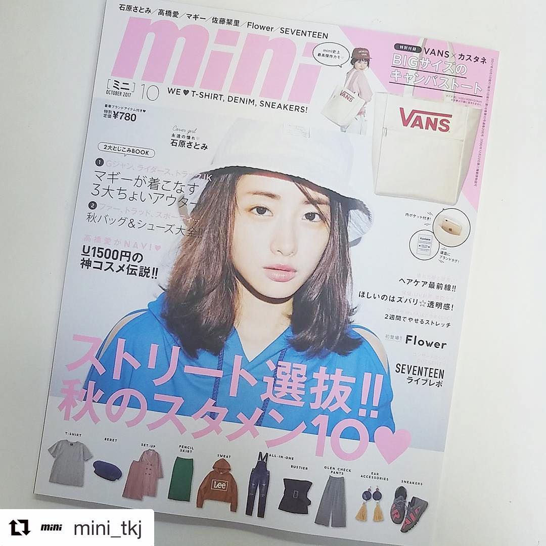 mini 10月号の見本誌到着🙋9/1発売です‼バケットハットをかぶったストリートな石原さとみちゃんが目印~👀💗#石原さとみ #vans #kastane #flower #seventeen