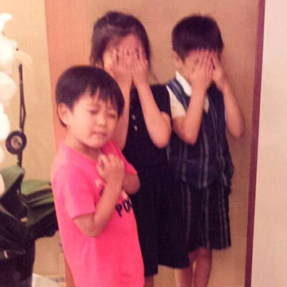 Having a rule meeting of hide and seek. They close eyes and hide together. Very peaceful… *