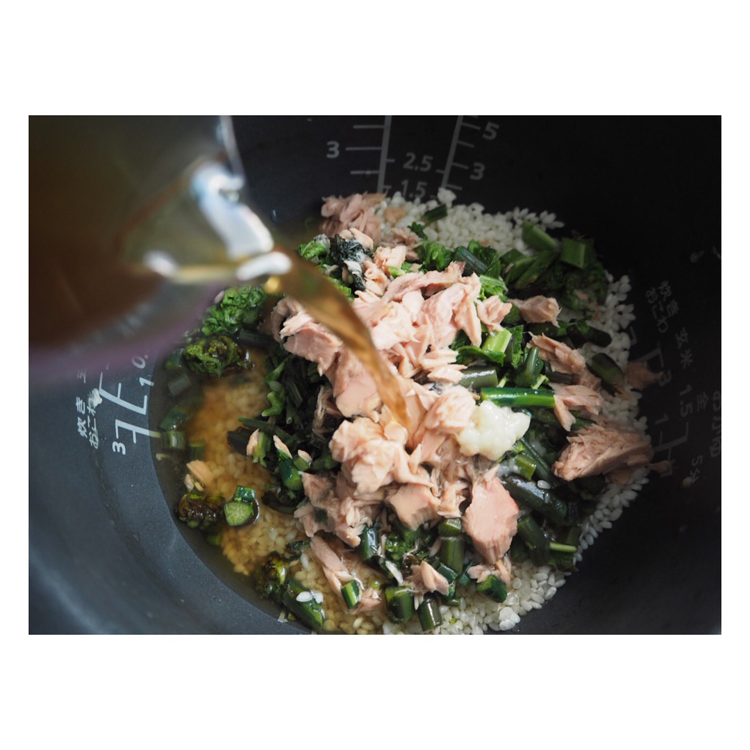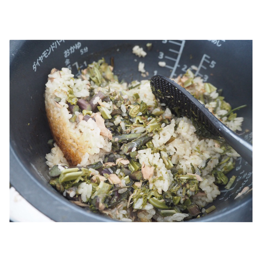 山菜ごはんを炊いて、おにぎりに。