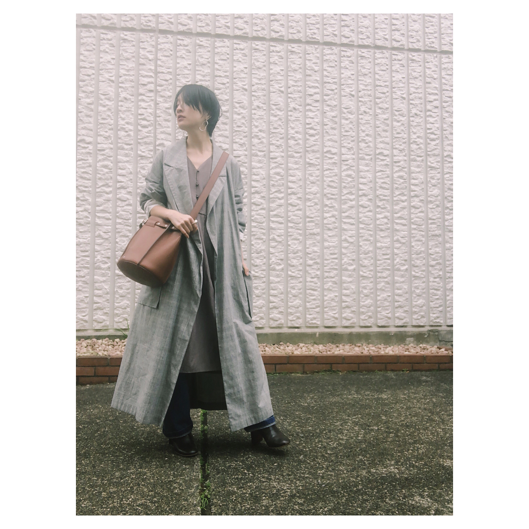 ロングトレンチもグレーだとまた新鮮。