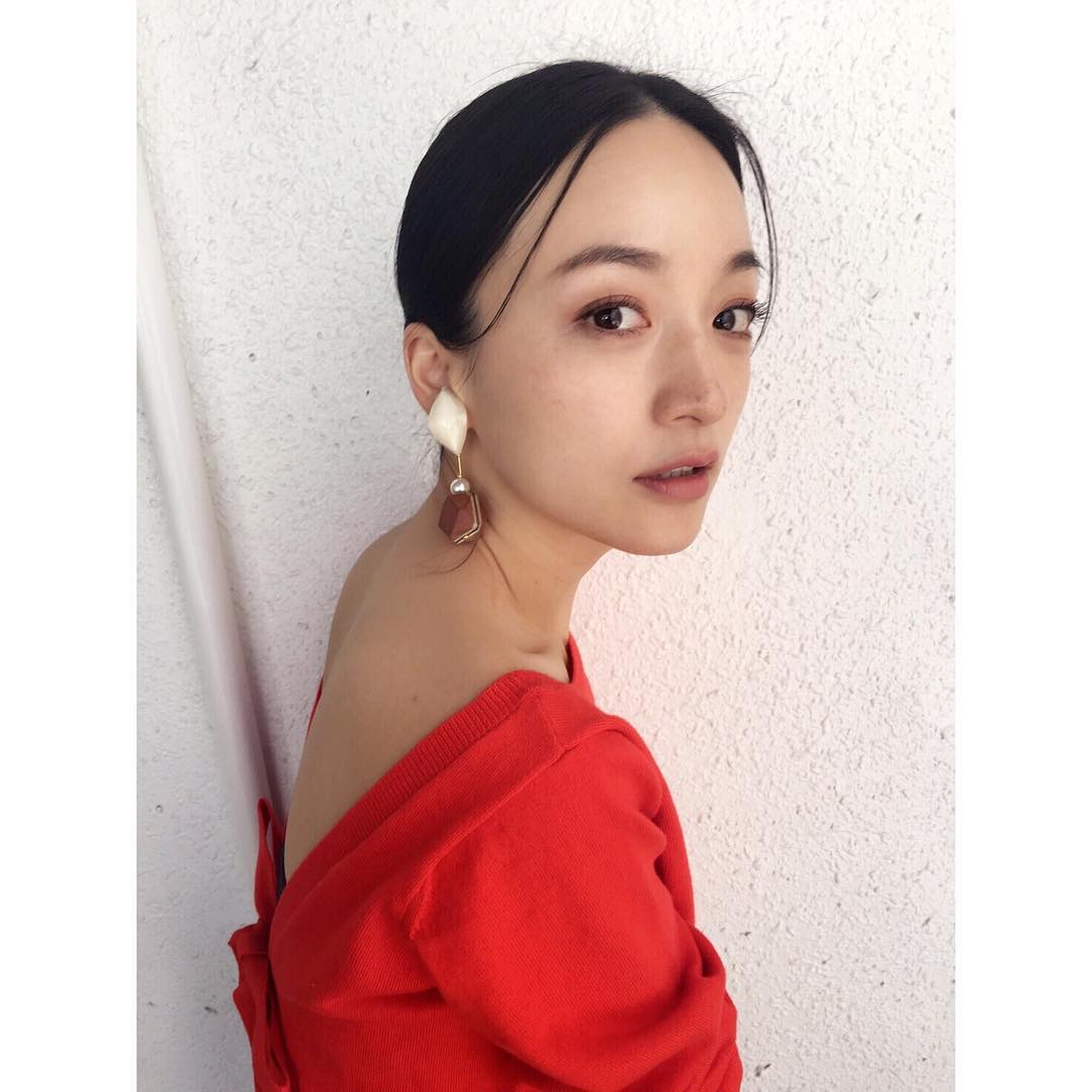 ピタッとタイトなヘアに大ぶりのイヤリング、パックリ背中開きニットのバランスも新鮮ですごくタイプだった。