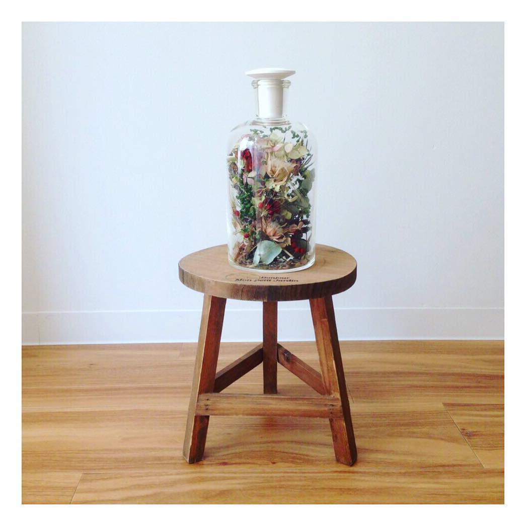 絶妙なバランスで葉っぱやお花たちが収まった瓶を、さらに自分好みにアレンジできるのも楽しい。