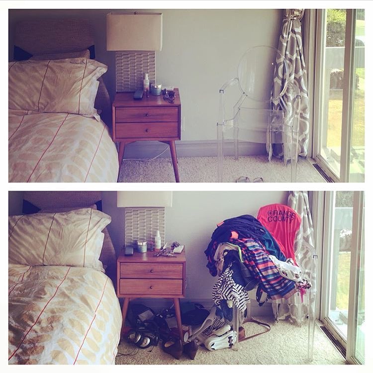 Another bedside because so much time is spent in your room, this space should be sacred! That means: hang up your clothes before bed, or toss them in the hamper! You don’t want the first thing you see in the morning to be the loose ends of the night before or the last thing you see before falling asleep. Again, your life is the sum of how you live each day. #spark #joy