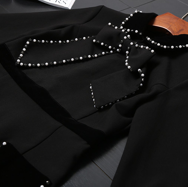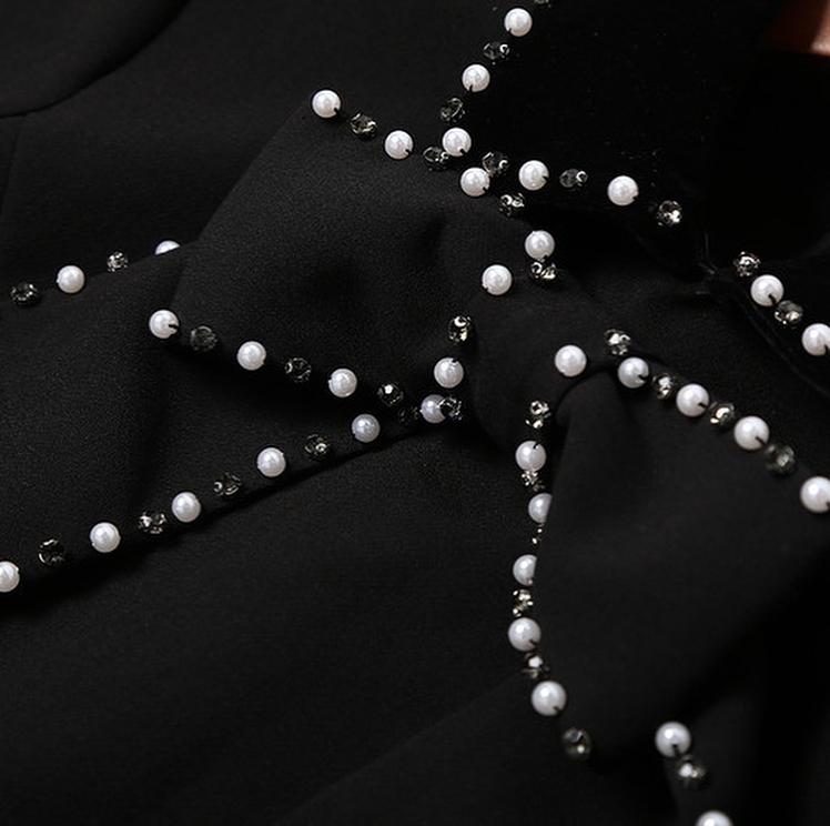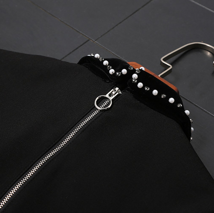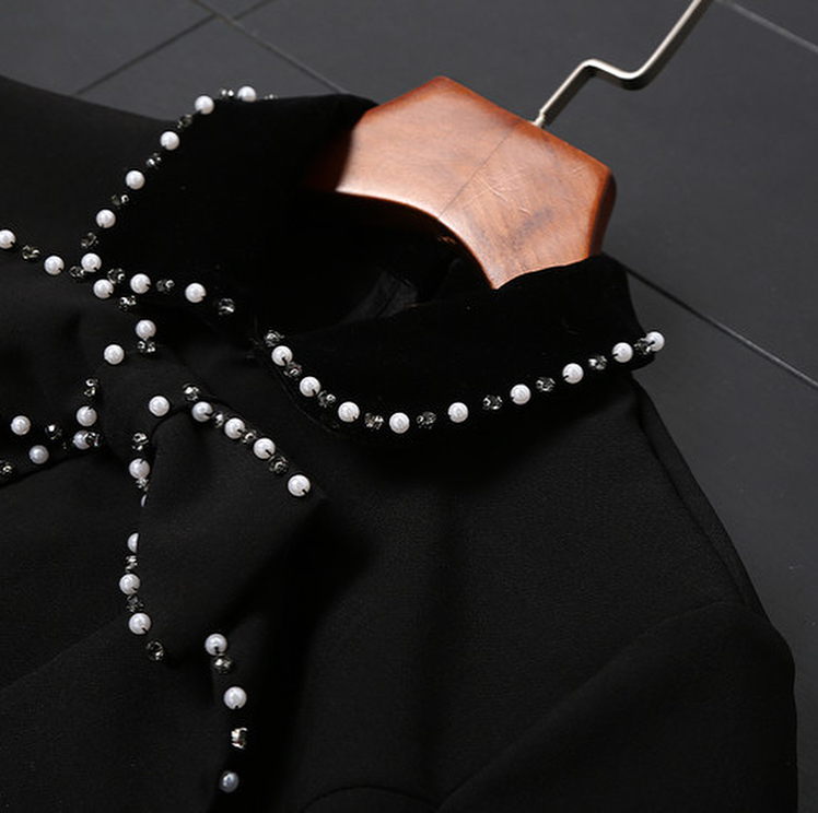 アシンメトリーな大きいパールリボンが素敵な、ベロア素材プラスの異素材ミックスドレスワンピース♡