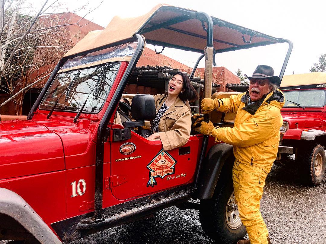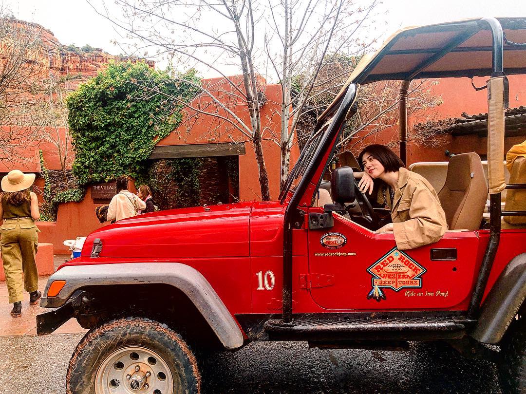 @三吉彩花 @三吉彩花: セドナ2日目はジープツアーへ 雨が降ってきて大変だったけどとても思い出に残るツアーでした! 運転免許取ったら絶対ジープに乗りたくて、赤いジープに大興奮しまし… 2019-03-12 セドナ2日目はジープツアーへ🚗 雨が降ってきて大変だったけどとても思い出に残るツアーでした! 運転免許取ったら絶対ジープに乗りたくて、赤いジープに大興奮しましたとさ☺️❤️ そして今日の日本時間で12:30ごろH&Mのショーの様子をインスタライブします! 是非見てくださいね☺️ #HMStudio #SS19 #HMxme @hm #ayaka_miyoshi#三吉彩花Ayaka MiyoshiFemalehmstudioHMxMEMiyoshi Ayakass19 WACOCA: People, Life, Style.