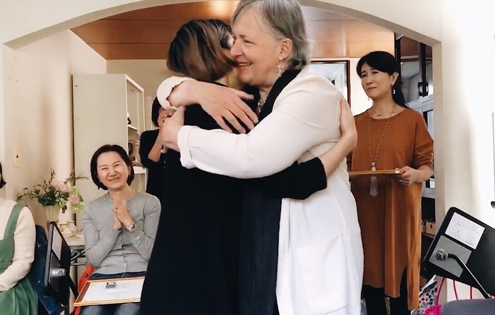 森田敦子さんの師である医学博士、産婦人科専門医、 パリ13大学医薬学部植物療法学元教授にして、ルボアフイトテラピースクール特別顧問ベランジェール・アルナール先生から授与されたディプロマとハグは、一生の宝物。