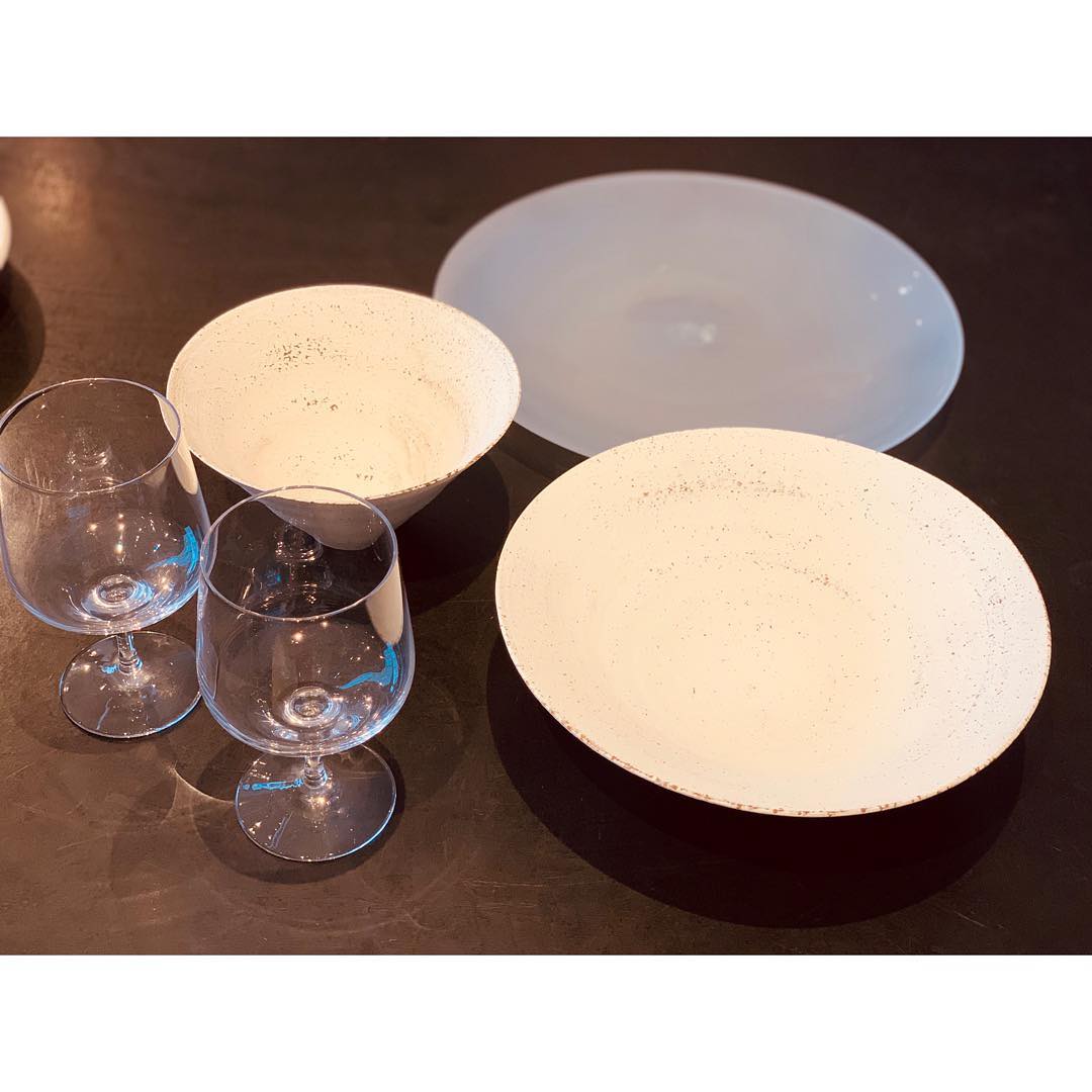 陶芸家の二階堂明弘さんのお皿、夏に使えるガラスのお皿をget。