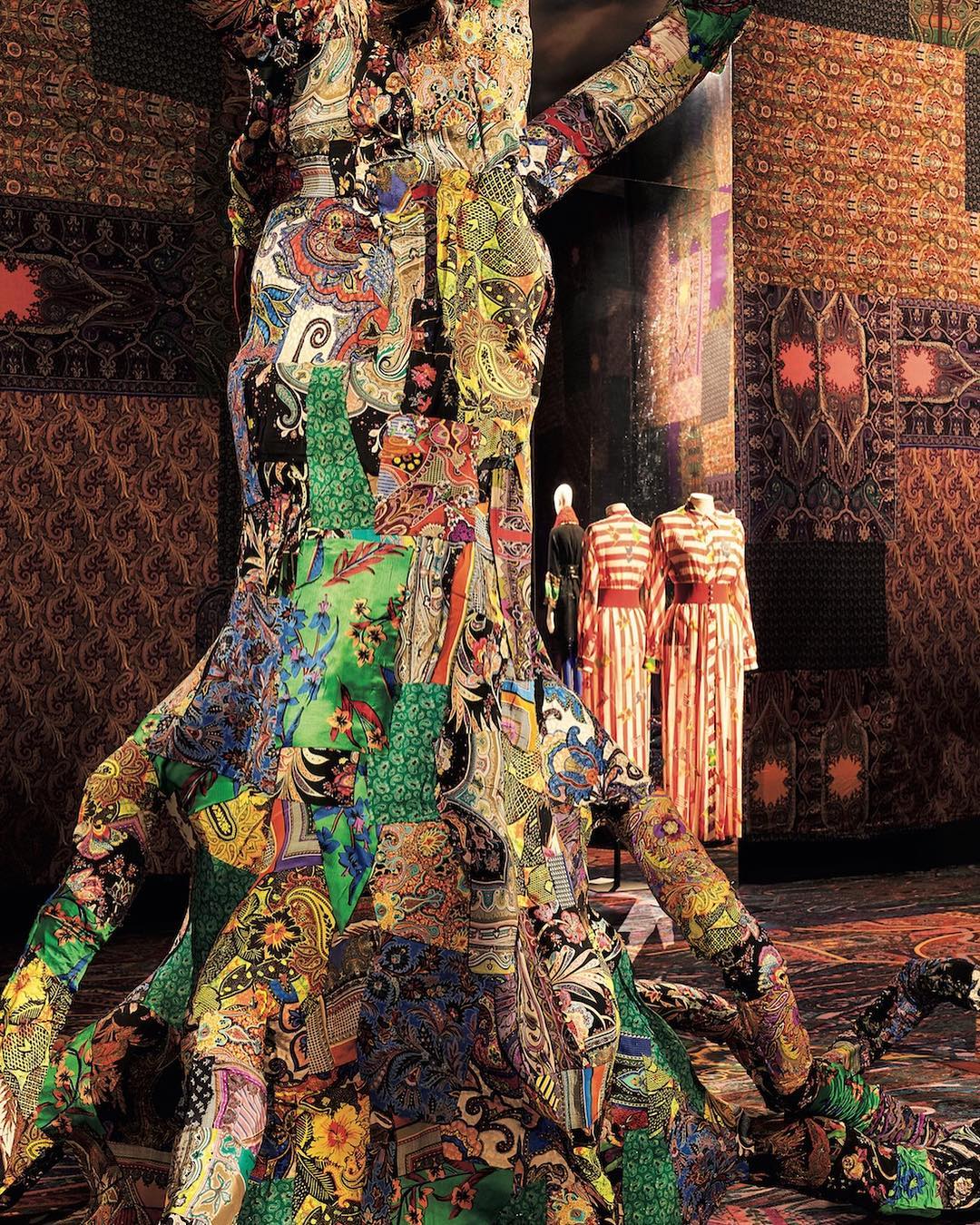 発売中の『VOGUE JAPAN』2月号では、エトロが提唱する持続可能な取り組みとその未来についてクリエイティブ・ディレクターのヴェロニカとキーン・エトロにインタビューを決行。1枚目の写真に写るペイズリー柄のパッチワークで覆われた樹木は、展覧会の際にお目見えした「生命の樹」と題されたオブジェ。デザイナーやブランドが発信するメッセージとは? 発売中の2月号で逃さずチェックして。