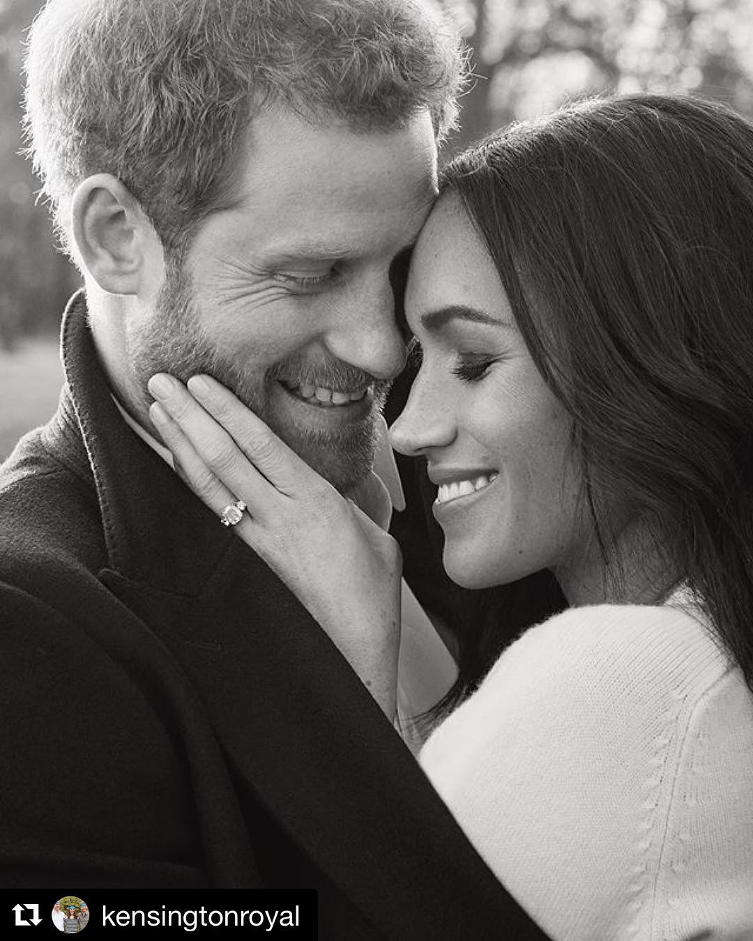 #ハリー王子 と#メーガン がEngagement Photoをお披露目✨✨✨2人の幸せそうな笑顔と、ドラマティックなモノクロ撮影が何とも印象的💕メーガンの薬指には、ハリー王子デザインのリングがキラリ💍