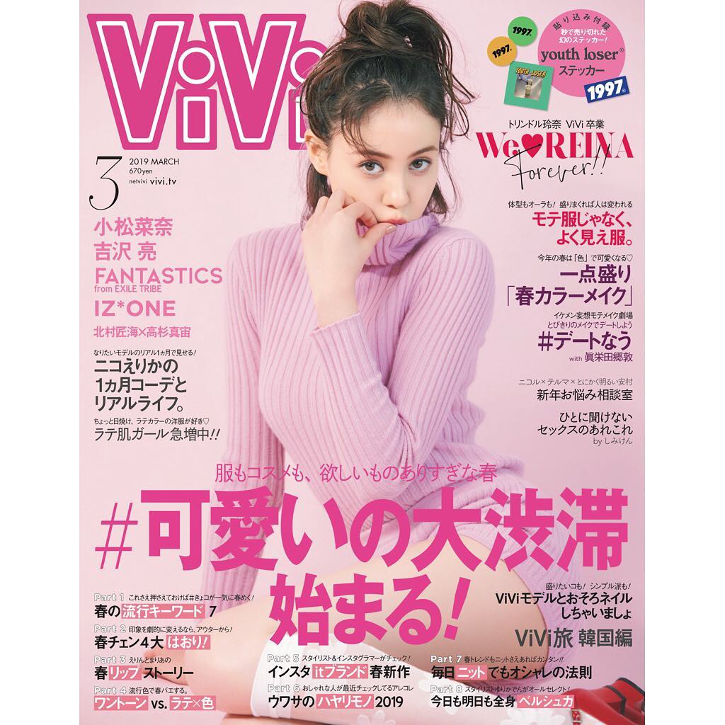 @ViVi @ViVi: 1月23日発売 ViVi3月号の表紙解禁 カバーガールは 発売日が誕生日の玲奈です ピンクの世界が可愛いー 春のトレンドも盛りだくさん #可愛いの大渋滞 が始ま… 2019-01-17 1月23日発売‼️ ViVi3月号の表紙解禁‼️ カバーガールは 発売日が誕生日の玲奈です💕💕 ピンクの世界が可愛いー😍 春のトレンドも盛りだくさん💕💕 #可愛いの大渋滞 が始まってます😋 @youthloser のステッカーも見逃せない‼️ #ViVi3月号 #トリンドル玲奈 #小松菜奈 #吉沢亮 #FANTASTICS #IZONE #眞栄田郷敦 #デート服 #ピンク #トリンドル玲奈FANTASTICSizoneViViViVi MagazineViVi3月号デート服ピンク可愛いの大渋滞吉沢亮小松菜奈眞栄田郷敦 WACOCA: People, Life, Style.