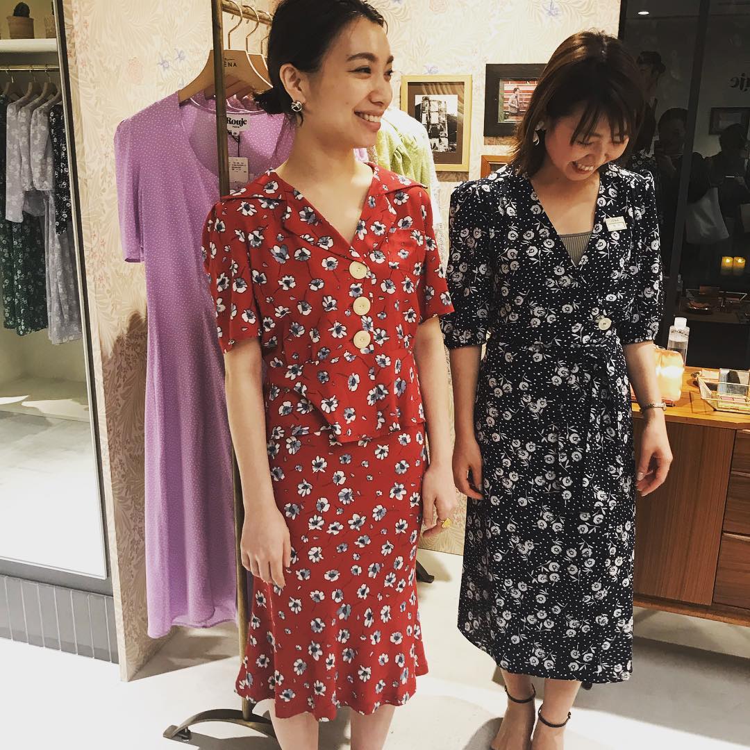自由が丘のMaison IENAにルイーズ&ジャンヌ姉妹に会いに行ってきました❤️ 1枚目の写真でジャンヌが着ている花柄のスカートもSSの新作。同じ柄のワンピースやブラウスもありましたよ。スワイプしていただくとスタッフの皆さんのコーディネートも載せているので、オンラインなどで買う方はぜひ参考にしてください。ワンピースはもちろん、プリントブラウス×デニムも素敵です!前回のコレクションも一瞬で売り切れてしまったそうなので、欲しい方はお早めに! 写真7枚目は、問い合わせが殺到しているというRoujeのリップ💄写真8〜10枚目は、ジャンヌの姉ルイーズのアクセサリーブランドです。
